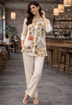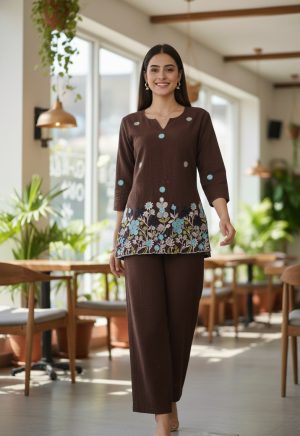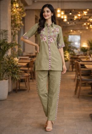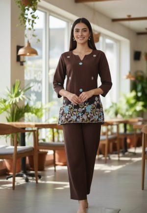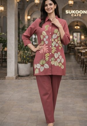 Co-Ord Set with Black Embroidery Premium Cotton Casual ware
