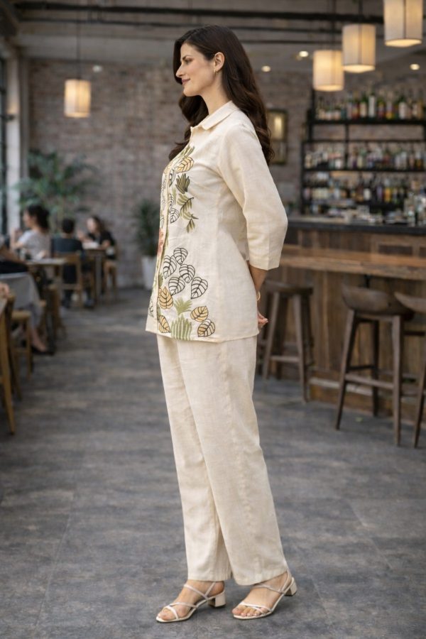 Furthermore, this Off-White embroidered co-ord set can be styled in multiple ways. Pair it with heels and statement earrings for a festive look; alternatively, opt for minimal accessories and flats for a refined office ensemble. As a result, it becomes a versatile wardrobe essential for women who value comfort, premium craftsmanship, and contemporary fashion.